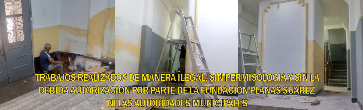 Dichos trabajos no cuentan con nuestra autorización ni están debidamente avalados por la Fundación Planas Suárez y los mismos se realizan sin cumplir con las normas mínimas de seguridad y sin poseer los respectivos permisos y evaluaciones técnicas que exigen las autoridades gubernamentales del Municipio Libertador y del Gobierno del Distrito Capital, por lo que no nos hacemos responsables de los daños y perjuicios que puedan ocasionar a las personas e instalaciones en general.
